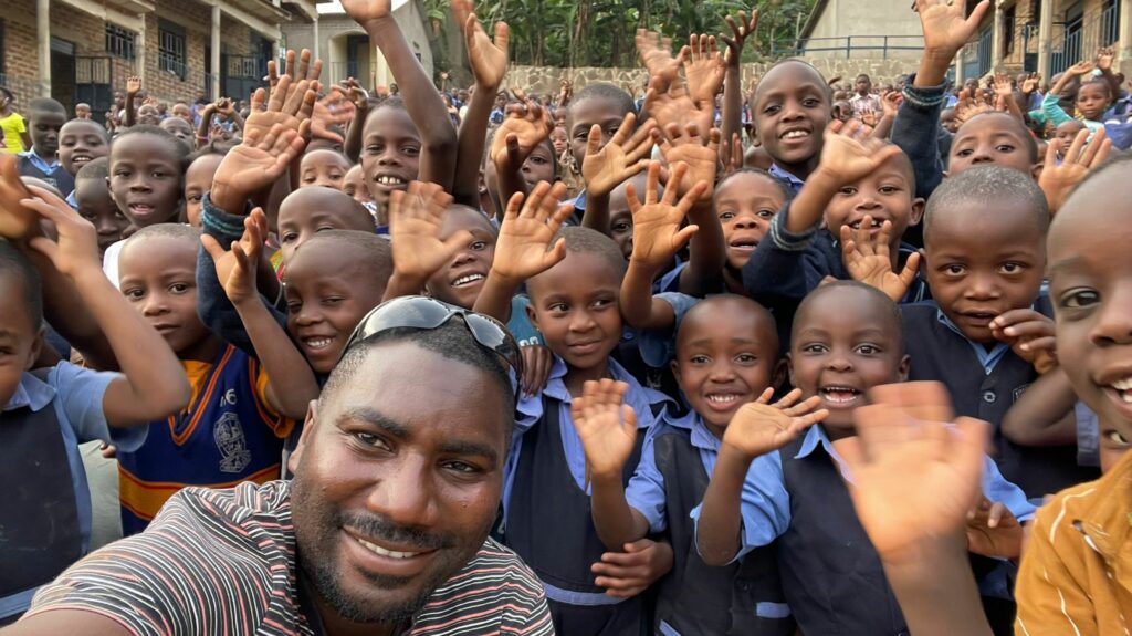 Sponsor Mike met kinderen