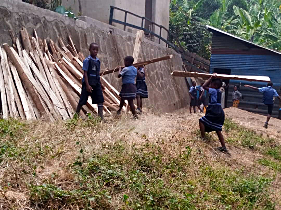 Nieuwe schoolbanken ook voor les buiten de klas (zolang het lokaal nog niet af is)